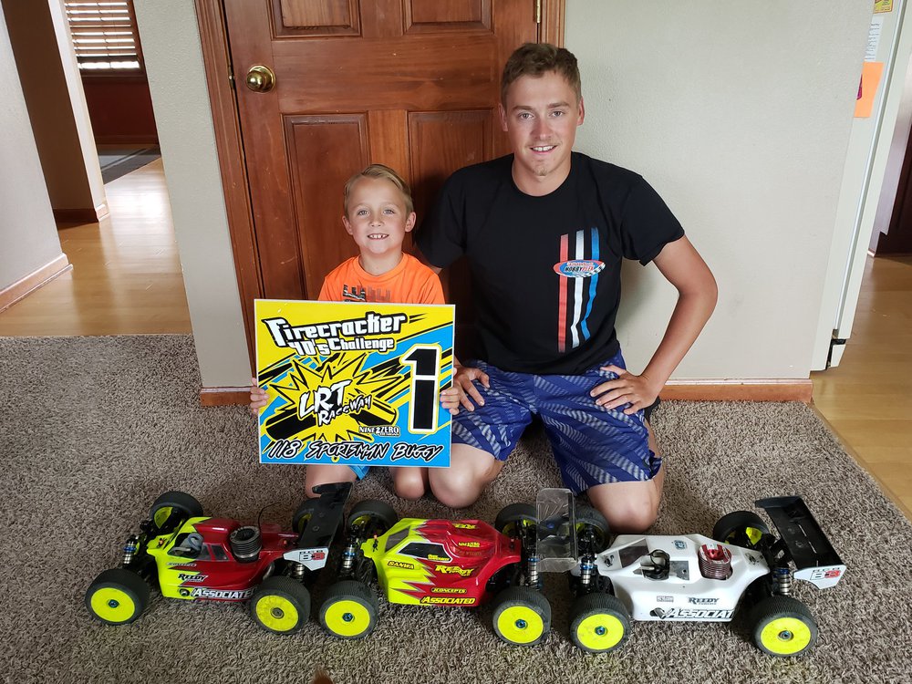 As with the entire Vanderbeek family, he has a passion for racing and winning. Unfortunately, sometimes things don’t always go your way, and as a young kid that can be tough – especially when you are leading your main event in a bump-up position ahead of grown adults with what feels like the world watching your every move. That is exactly what happened this past weekend at the Team Associated Championships hosted by Trackside Hobbies and Raceway. Owen would start third in the Mod 4wd Buggy D-Main, quickly jump to the lead, bump against the wall mid-air and rip the front left wheel off his buggy. This would end his chances at moving on…or would it?